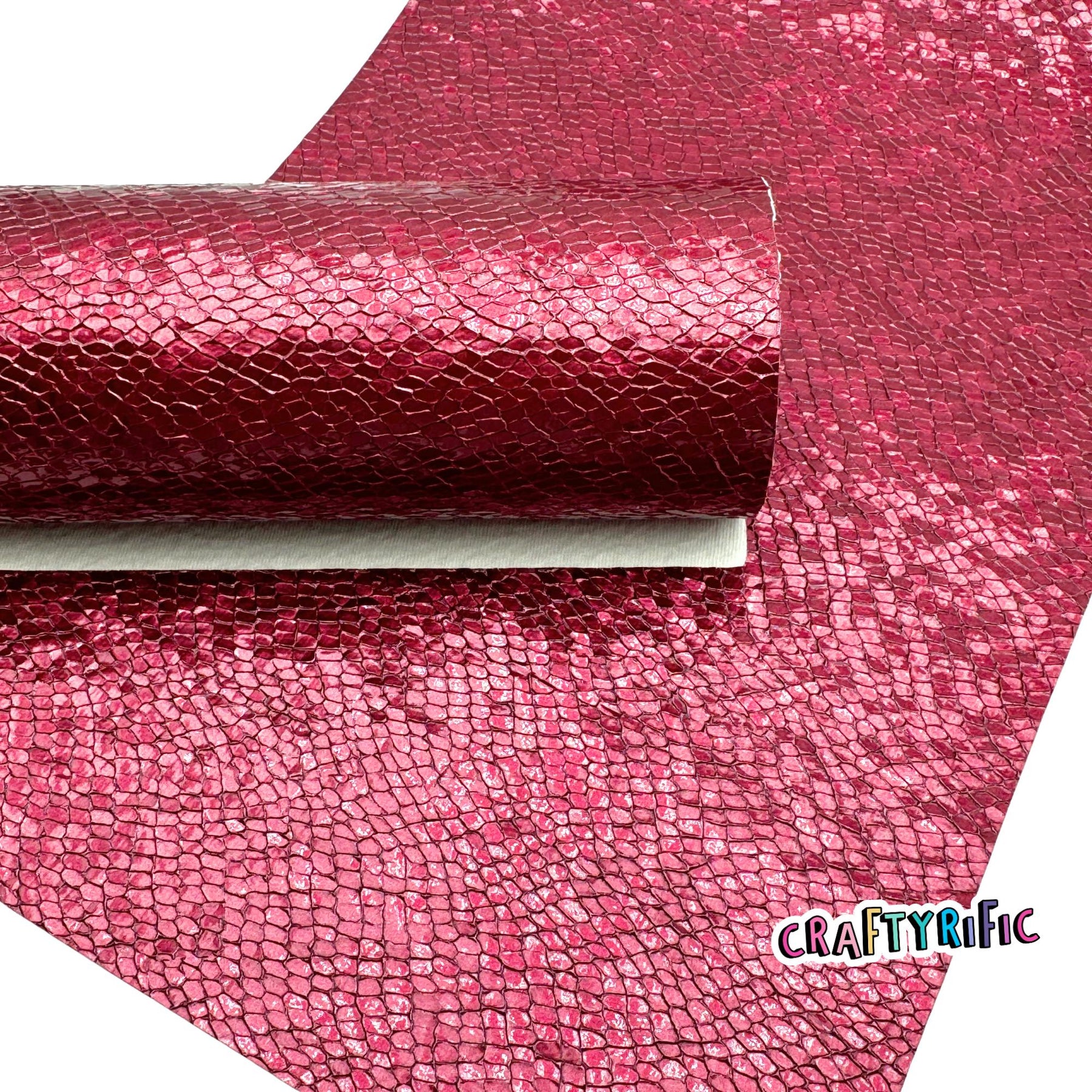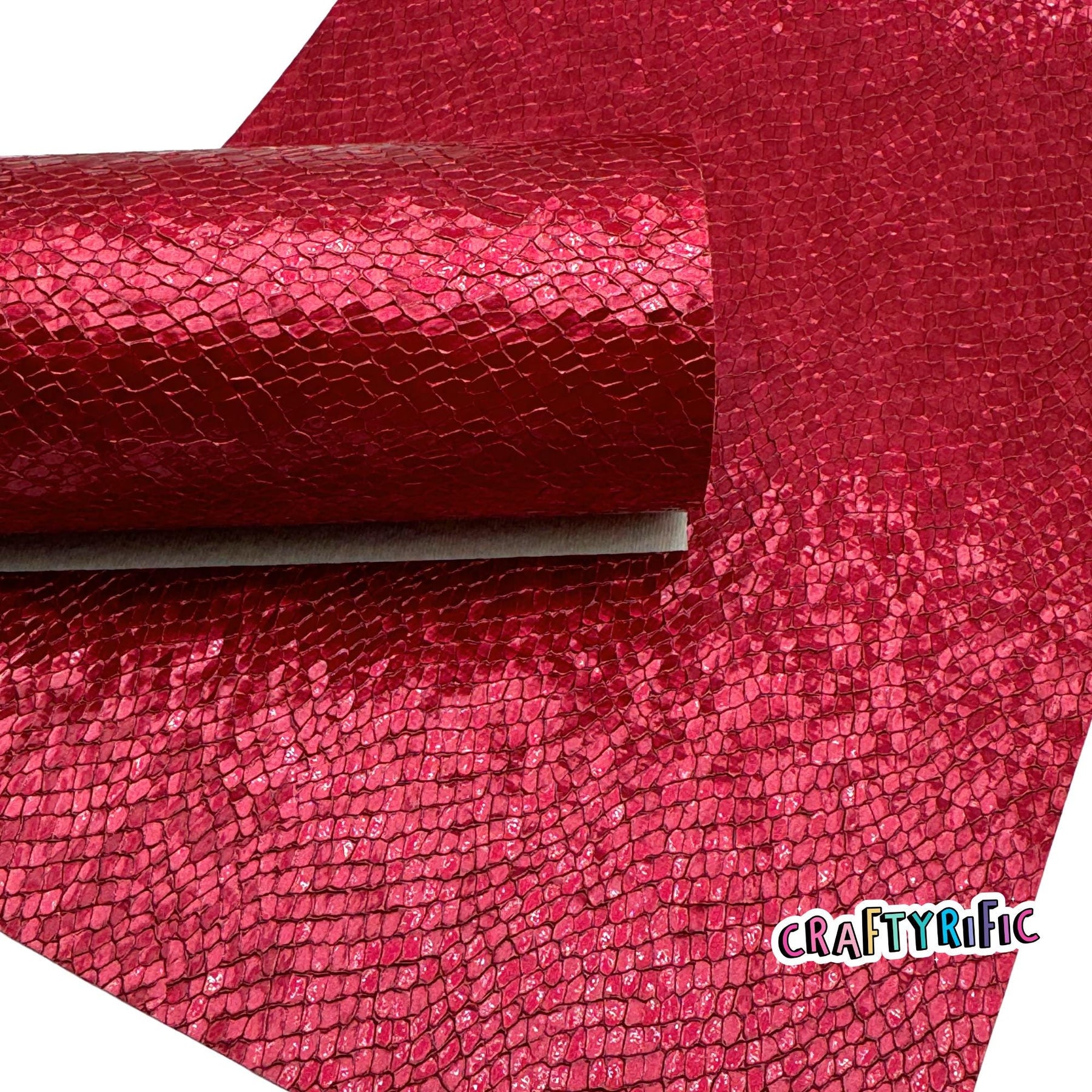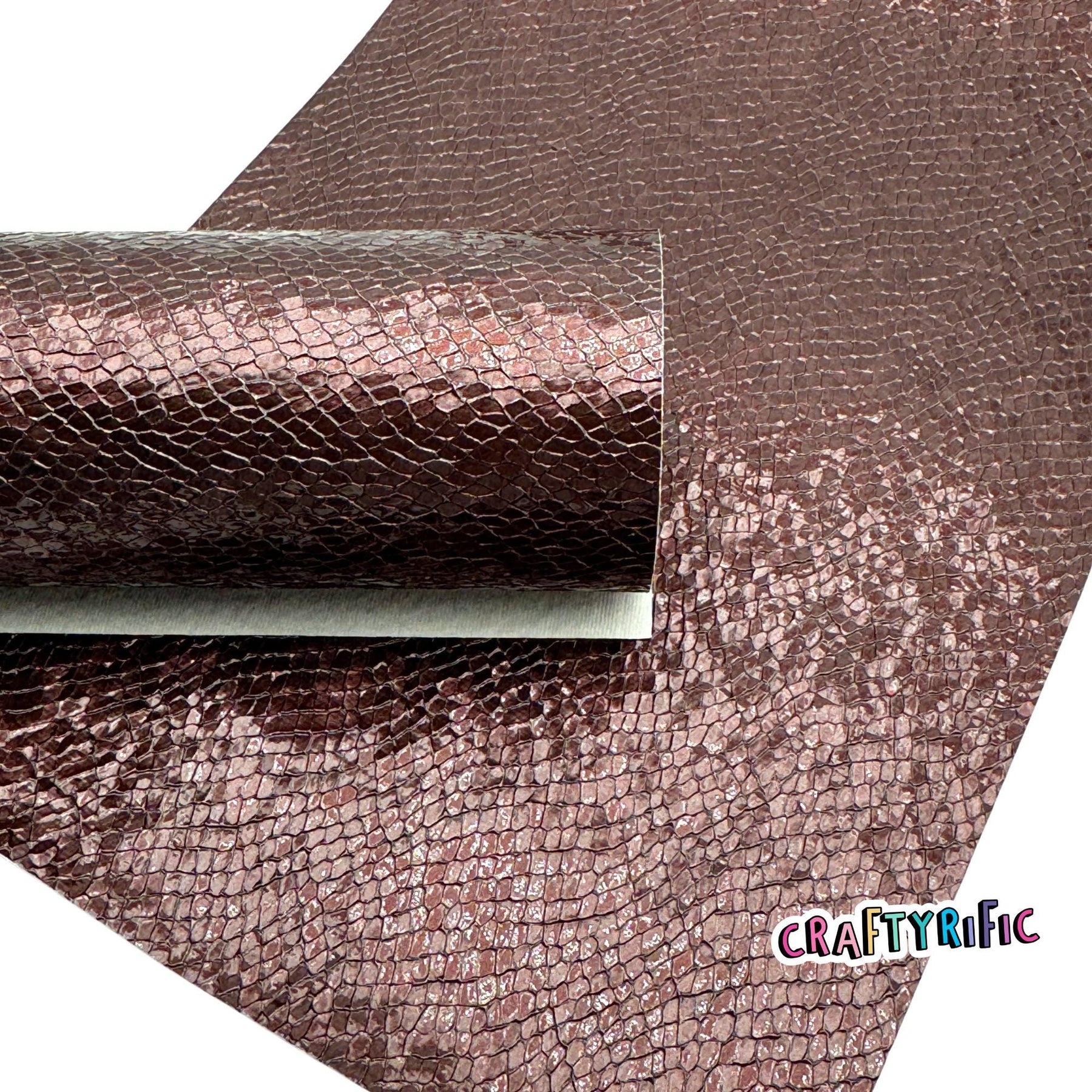 Gorgeous textured leatherette fabric with a glossy finish. **Please note backing might be tan or maroon. Different batches might have different backings**