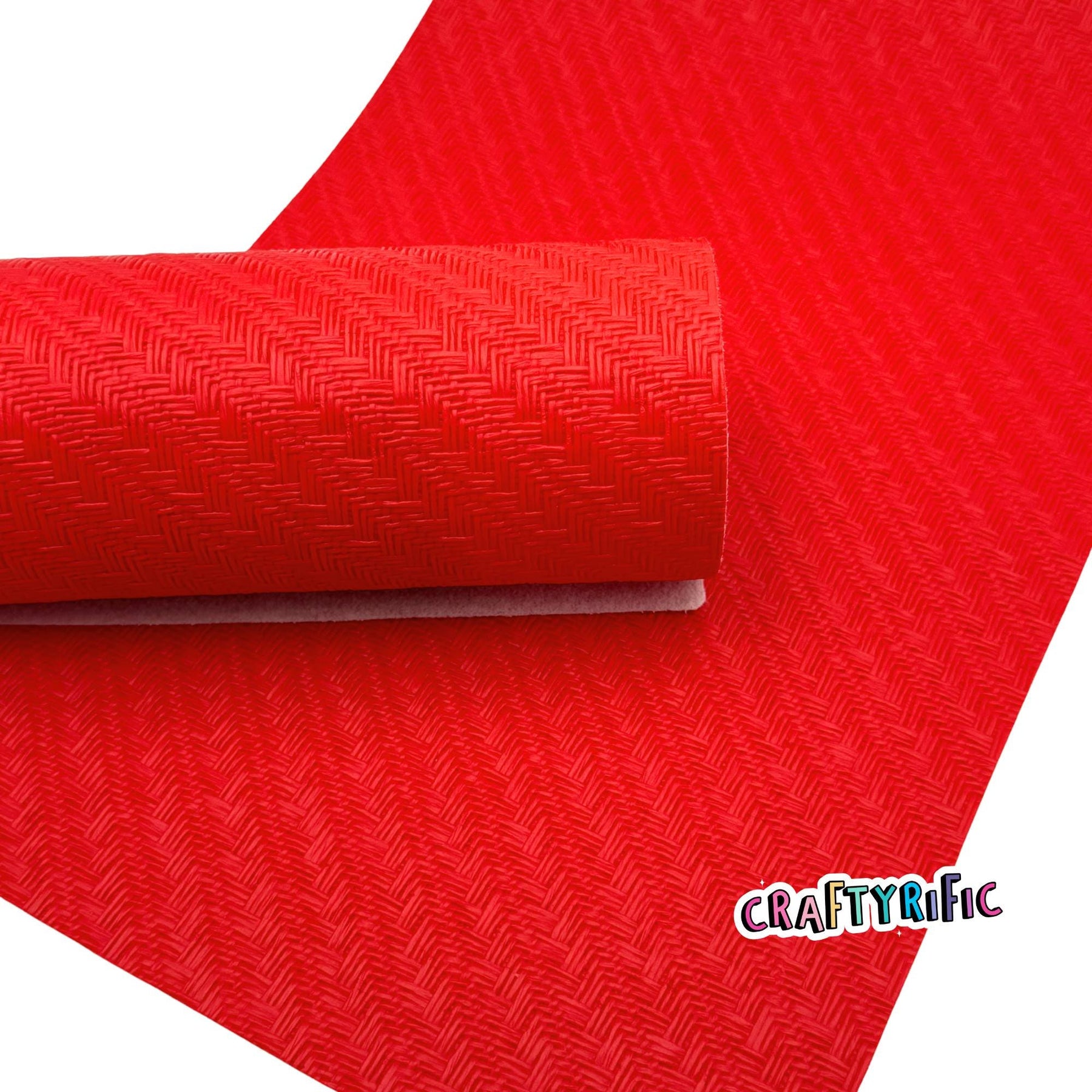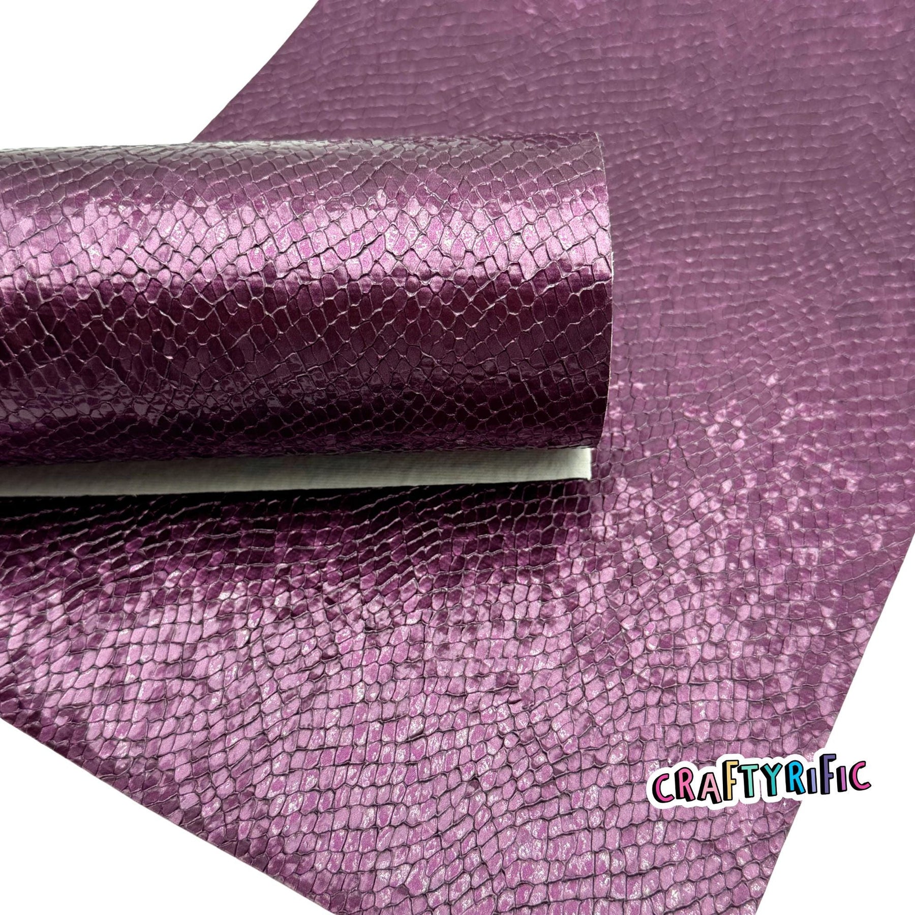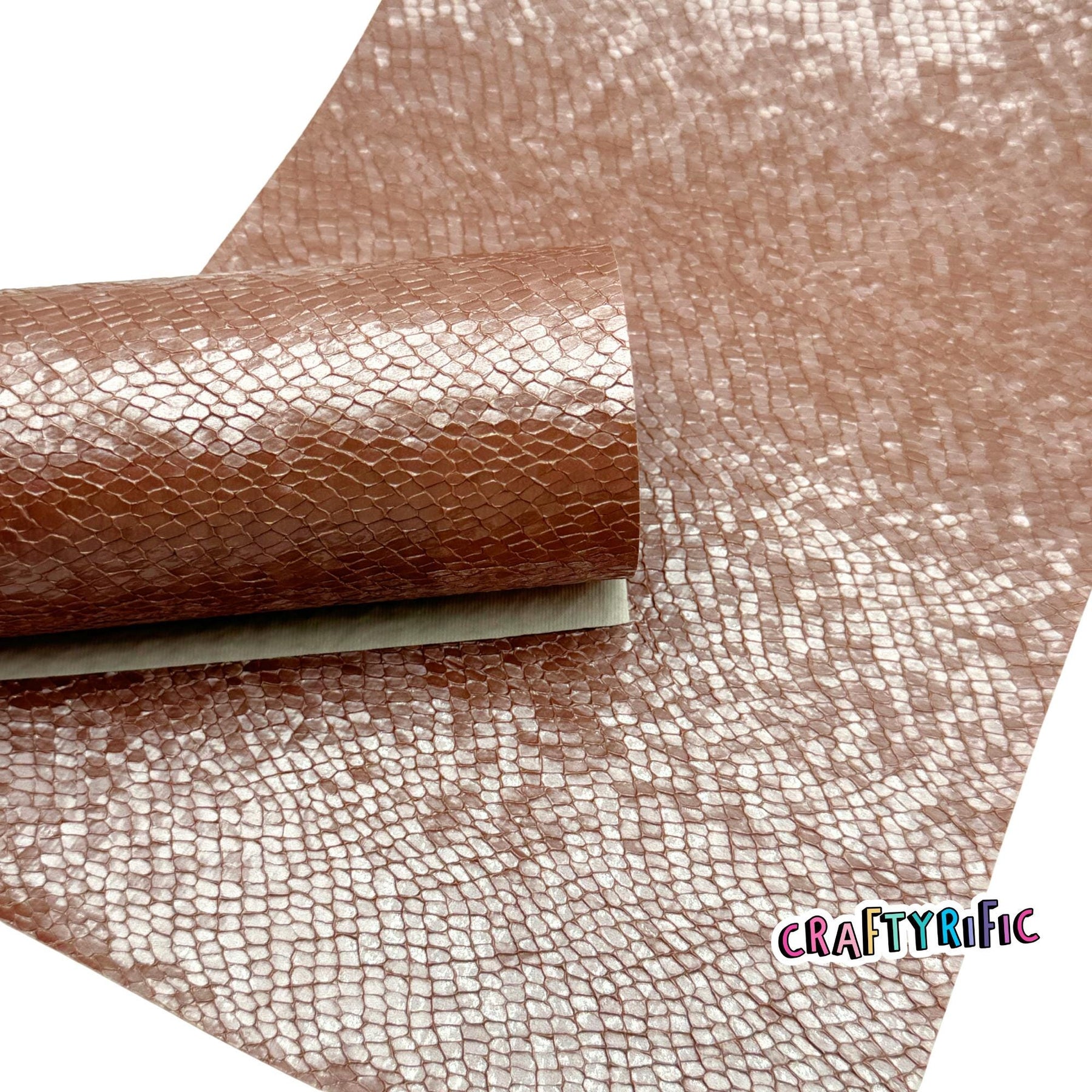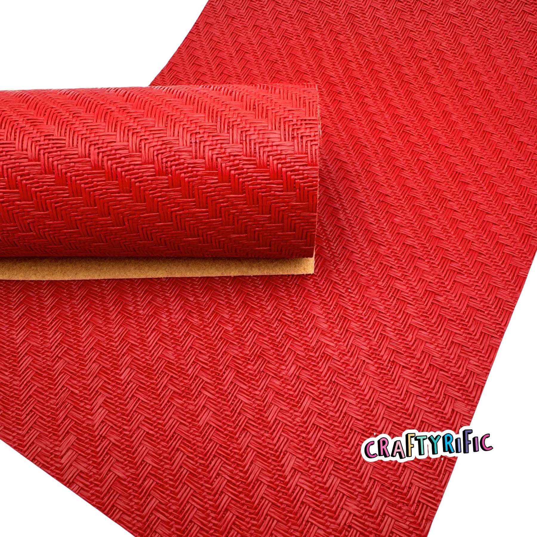 Gorgeous textured leatherette fabric with a glossy finish. **Please note backing might be tan or maroon. Different batches might have different backings**