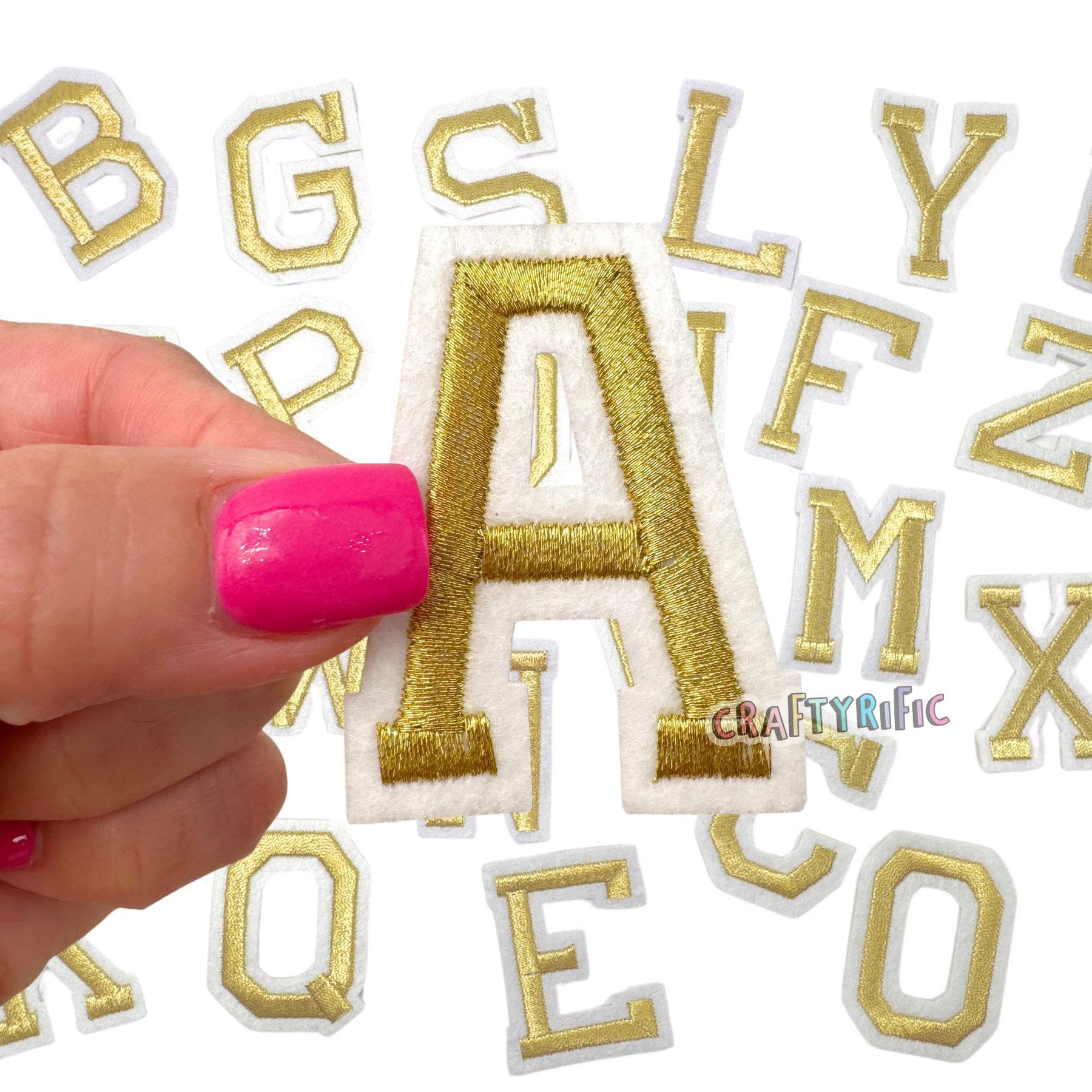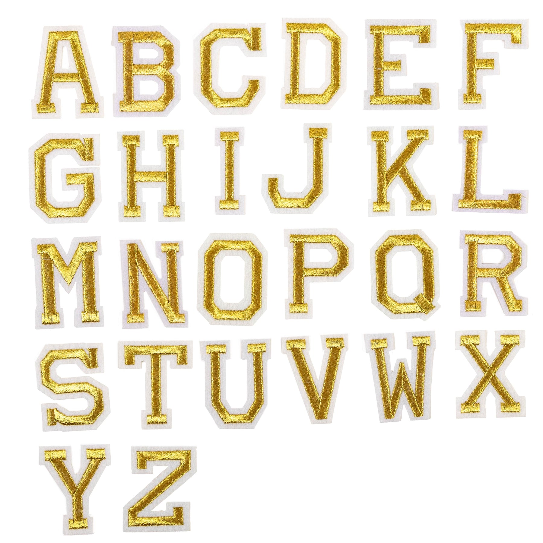 High quality embroidered letter patch and iron on backing.