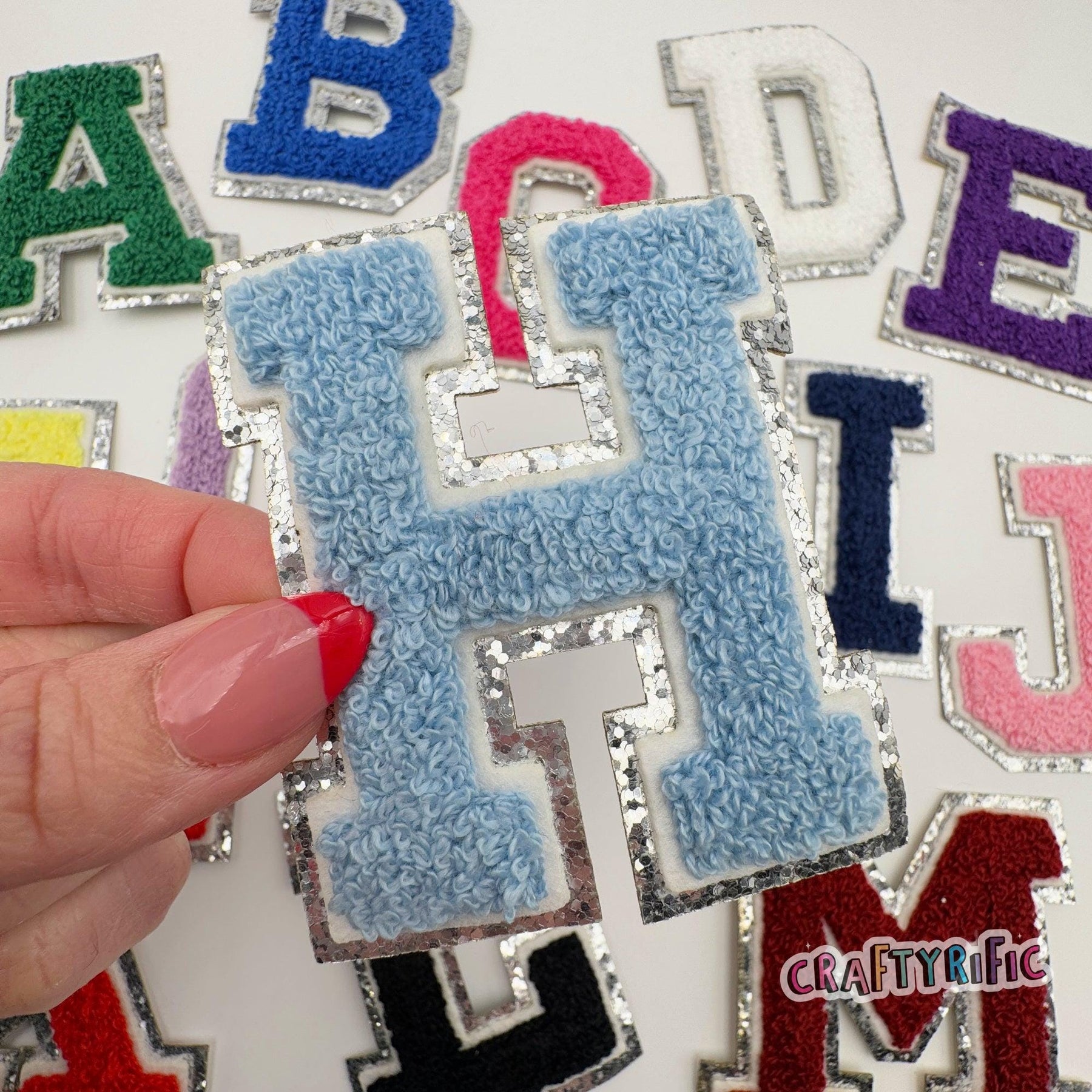 High quality embroidered letter patch and iron on backing.